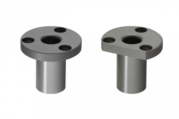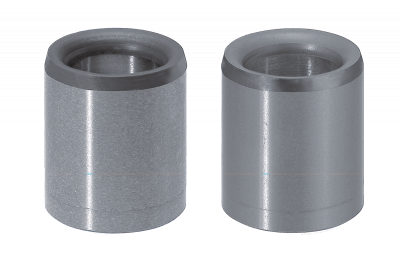 | Cylindrical drill bushings are used in fixtures that are not under a heavy load, e.g. guides for pins or drill guides in soft materials. | Collar drill bushings are easier to mount and when subjected to axial forces, the collar acts as a stop, reliably preventing the drill bushing from sliding into the bore. | Socket drill bushings are also easy to mount, but even easier to remove because the stop pins are removed and the knurled surface makes the bushing easier to grip and therefore remove. |