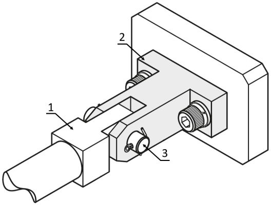 Application example: Pin with cross hole: (1) Spherical plain bearing, (2) U-shaped hinge bearing block, (3) Hinge pin with cross hole
