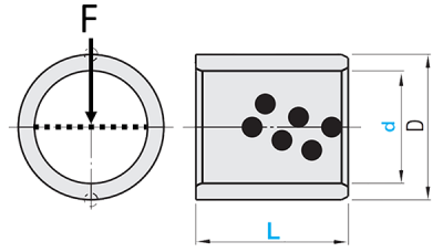 The wear intensity W varies depending on the operating and environmental conditions such as operating behavior, surface pressure, type of movement, surface roughness of the contact shaft, and so on. If the wear intensity is proportional to the load and gliding distance, the following formula can be used to approximate the material wear.