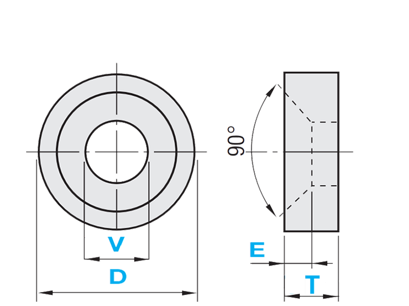 Precision class | Dimension T: ±0.01 mm | Dimension V: 0.3 mm/0.1 mm Dimension D: 0/-0.2 mm |