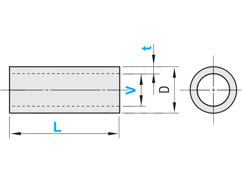 | Metal sleeve | - Dimension L selectable - Dimension V and D selectable depending on L |