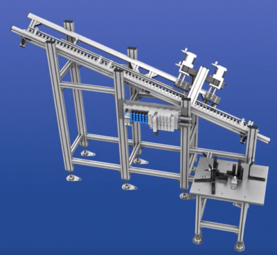 Another design example can also be found directly at MISUMI. A wheel conveyor for body-in-white production (part of the production of car bodies where the individual parts are joined, e.g. by welding) is shown here. It consists of aluminum profiles, roller conveyors, NAAMS components and sensors.