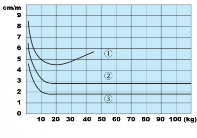 Depending on the bottom of the conveyed material, the appropriate material and outer diameter of the conveyor rollers can be determined from the following table, where 1N corresponds to the weight force of about 100g.