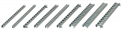 - Frame structure: So-called side rails or conveyor frames form the base frame of roller conveyors. They are for example equipped with holes and openings in which rollers, spacer tubes and other elements can be attached.