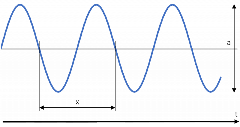 - a - Amplitude peak. The higher the maximum amplitude peak, the more intense - i.e. brighter - the light appears.